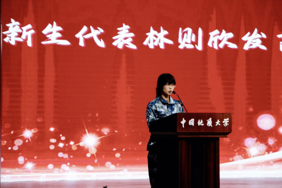本科生新生代表林则欣发言。她提到自己坚定选择地大与云顶国际,既有家族传承的影响,也有个人对资源领域的热爱与思考。她表示,学校 “艰苦朴素,求真务实” 的校训与个人理想高度契合,期待未来四年与同学们并肩同行,共同探索地球奥秘,在求知路上相互扶持、共同成长。